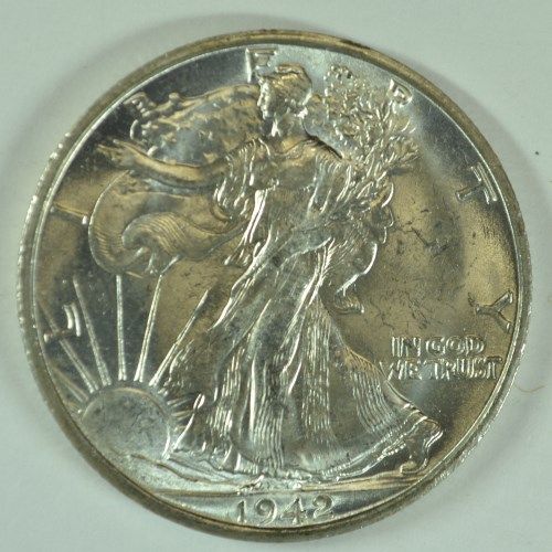 1942-S WALKING LIBERTY HALF DOLLAR, MS-64 BEAUTIFUL WHITE