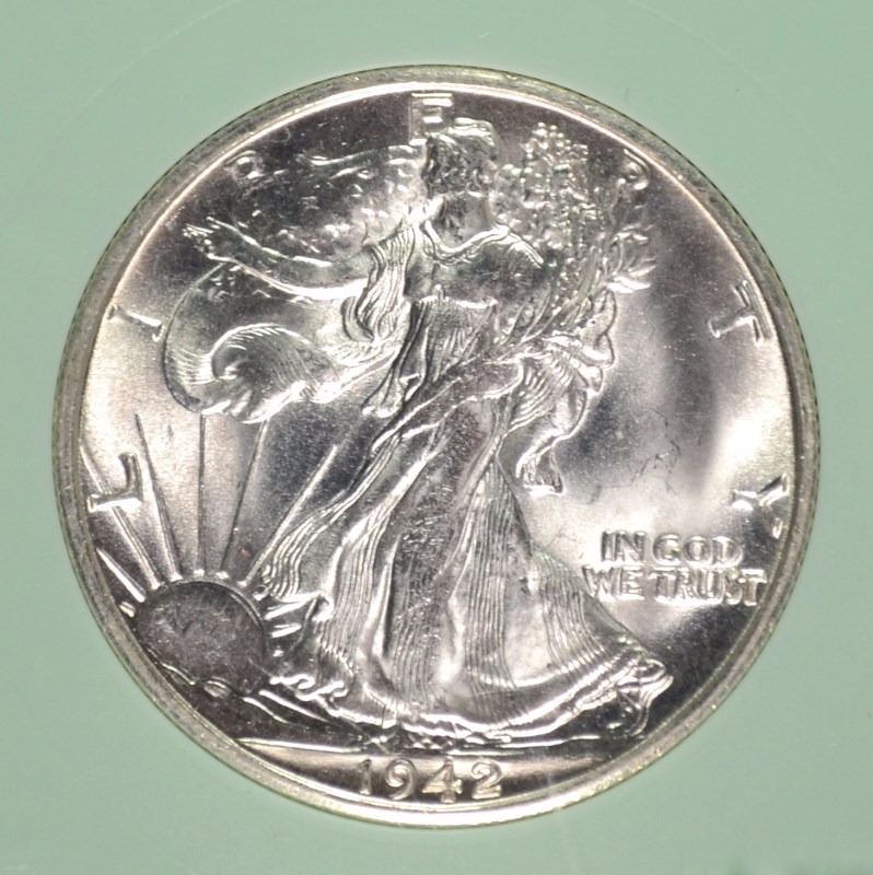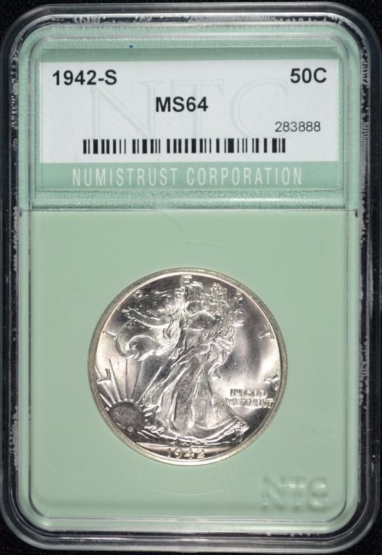1942-S WALKING LIBERTY HALF DOLLAR NTC GEM BU WHITE, REALLY NICE LOOKS MS65!