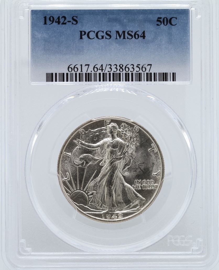 One 1942-S Walking Liberty Half Dollar Coin PCGS MS64.