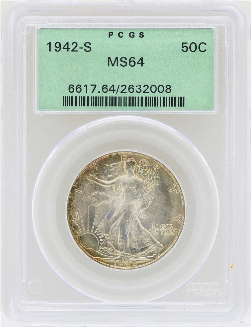 One 1942-S Walking Liberty Half Dollar Coin PCGS MS64. PCGS Graded.