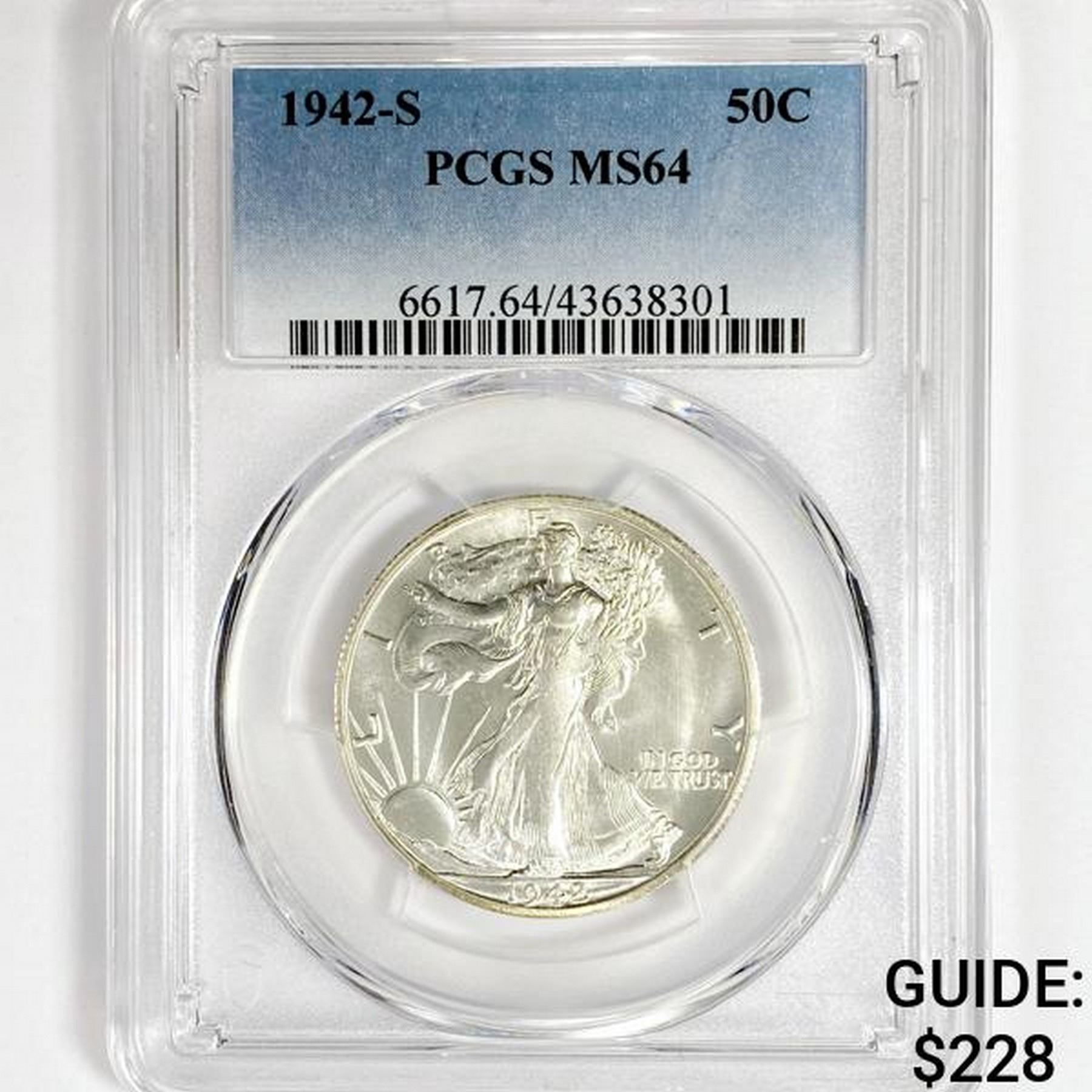 1942-S Walking Liberty Half Dollar PCGS-MS64