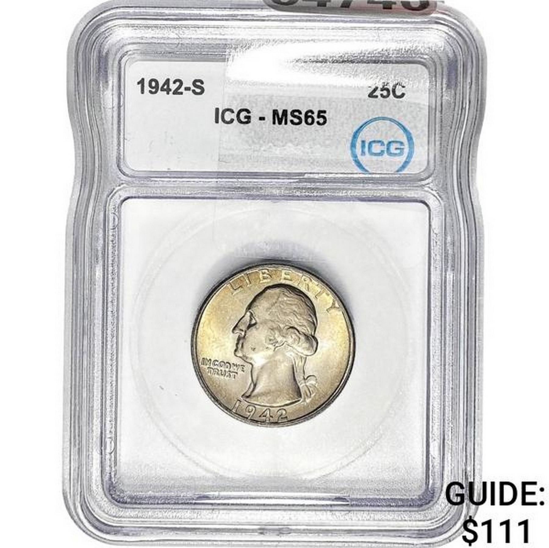 1942-S Washington Silver Quarter ICG MS65