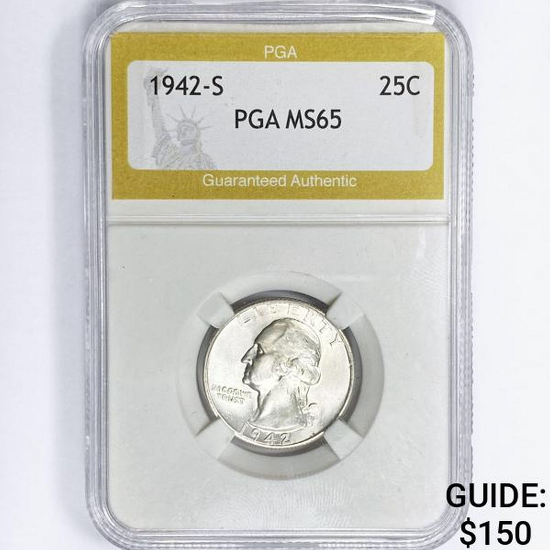 1942-S Washington Silver Quarter PGA MS65