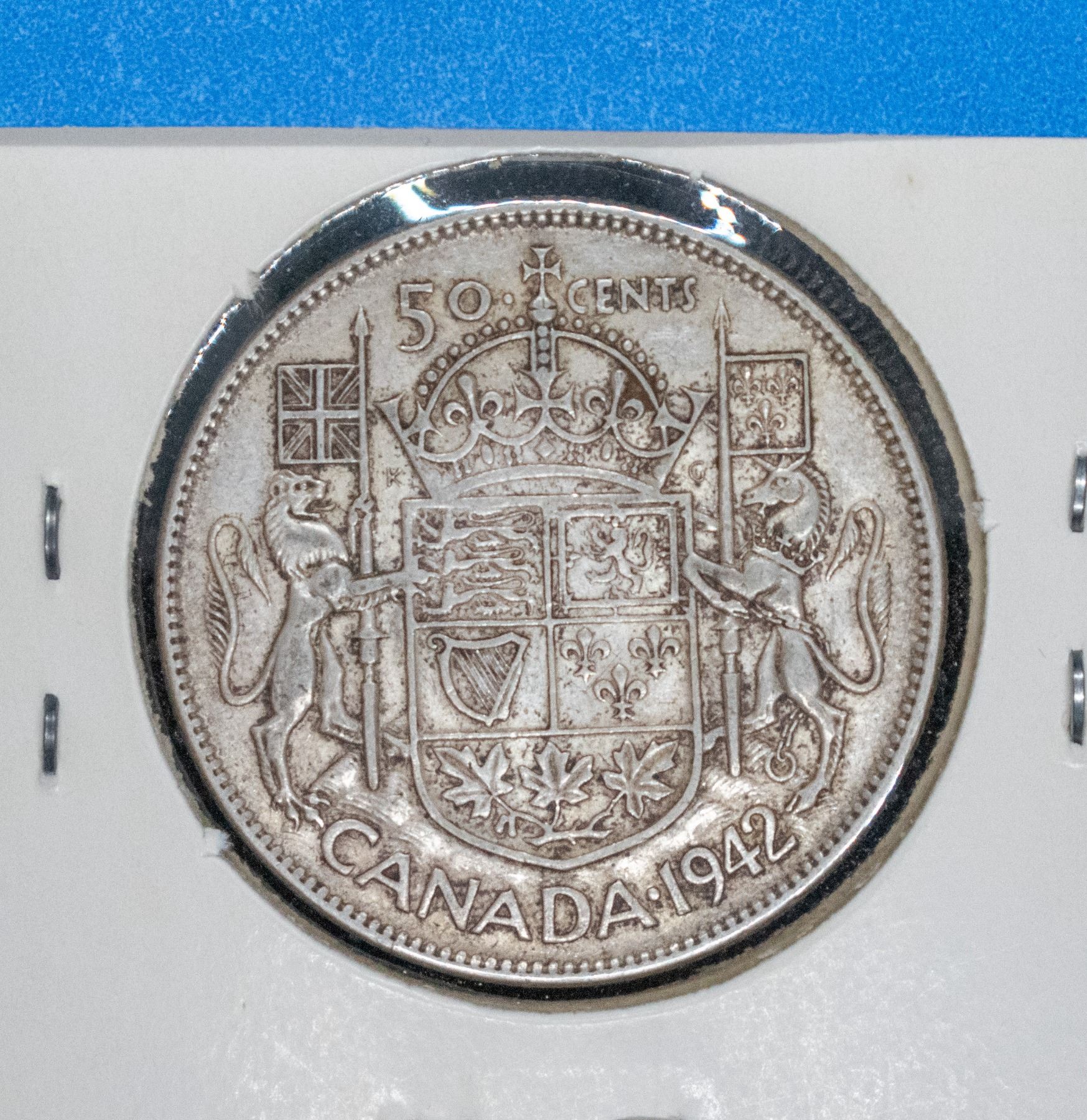 1942 SILVER CANADA 50 CENT COIN VG