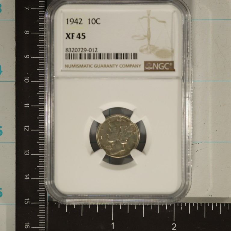1942 SILVER MERCURY DIME NGC XF45