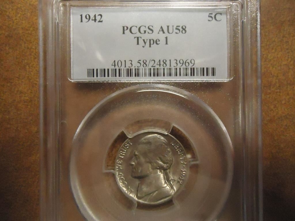 1942 TYPE 1 JEFFERSON NICKEL PCGS AU58