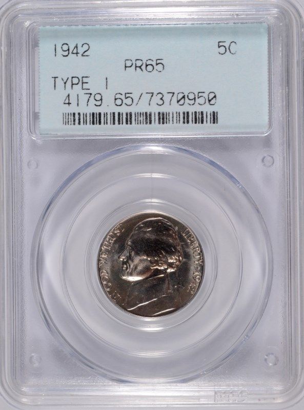 1942 TYPE-1 JEFFERSON NICKEL, PCGS PROOF-65