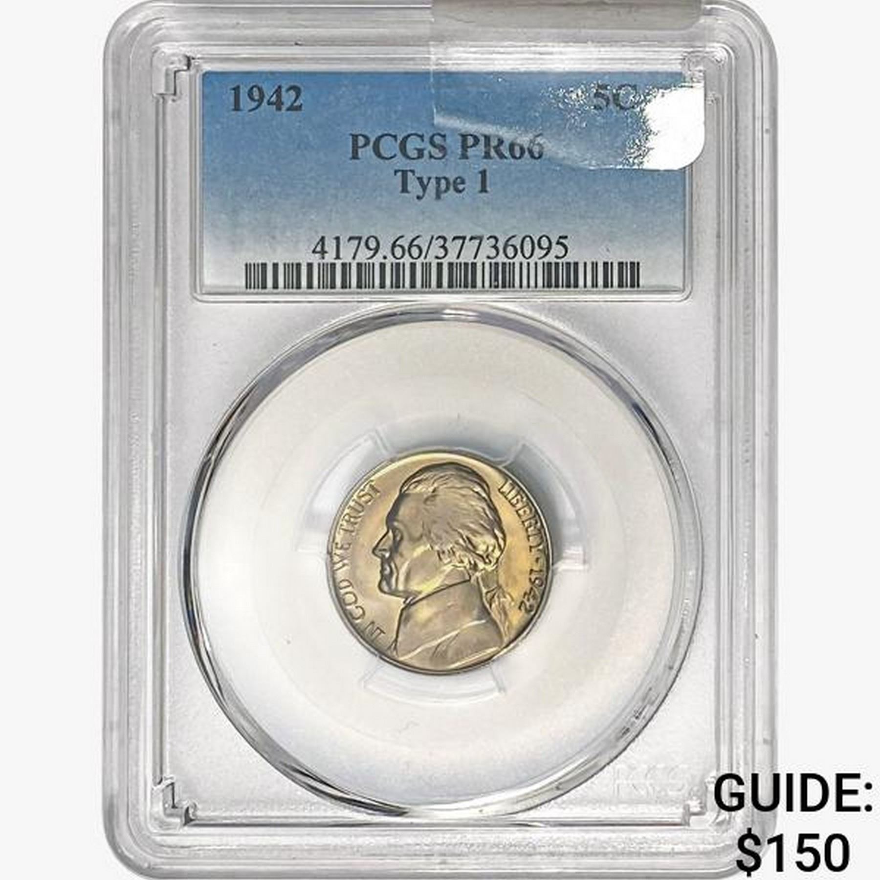 1942 TYPE 1 Jefferson Nickel PCGS PR66