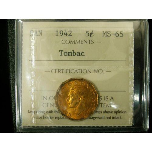 1942 Tombac 5¢ ICCS MS65 Brilliant with full luster.