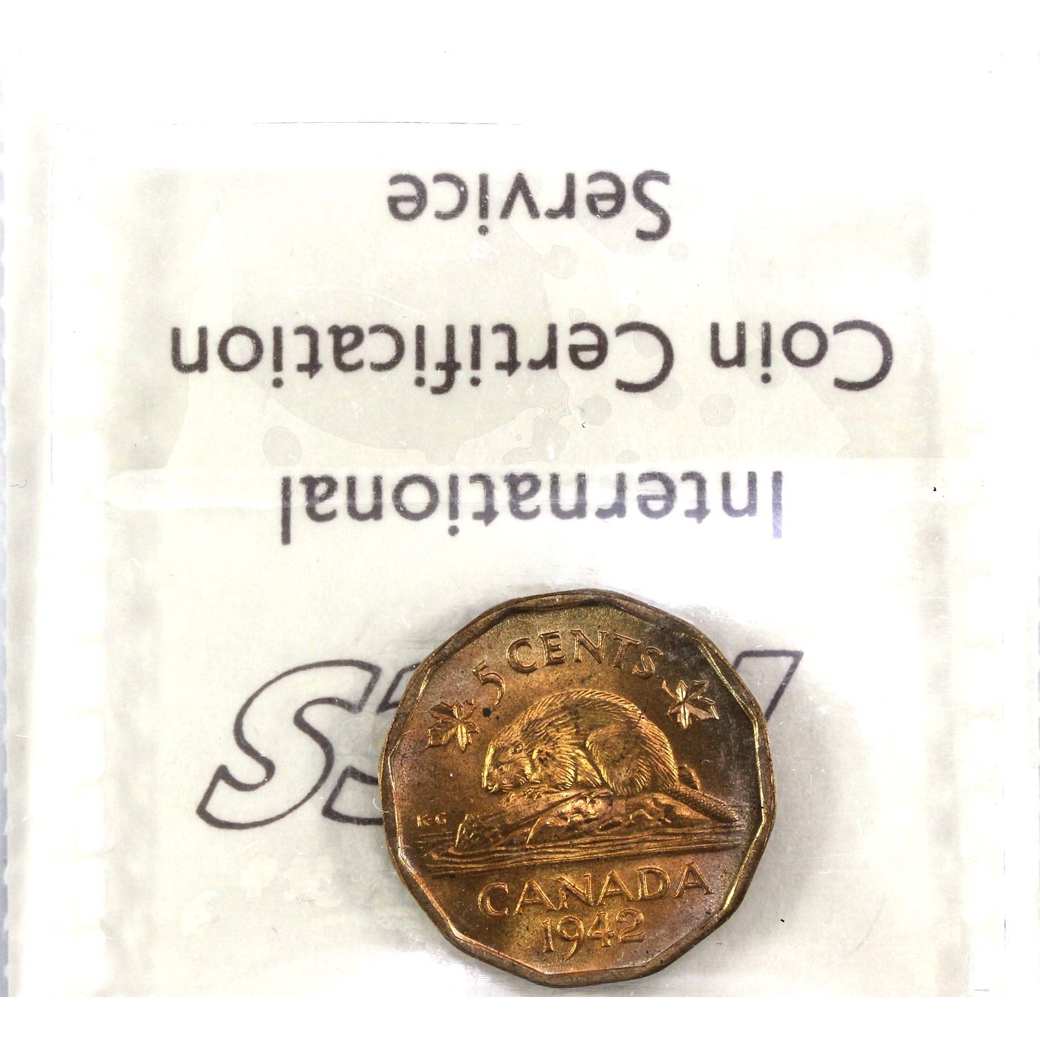 1942 Tombac Canada 5-cent ICCS Certified MS-65