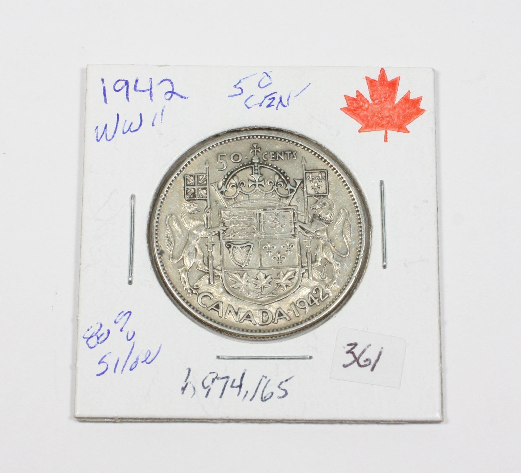 1942 W.W.II 50 CENT PIECE 80% SILVER ONLY1,974,165