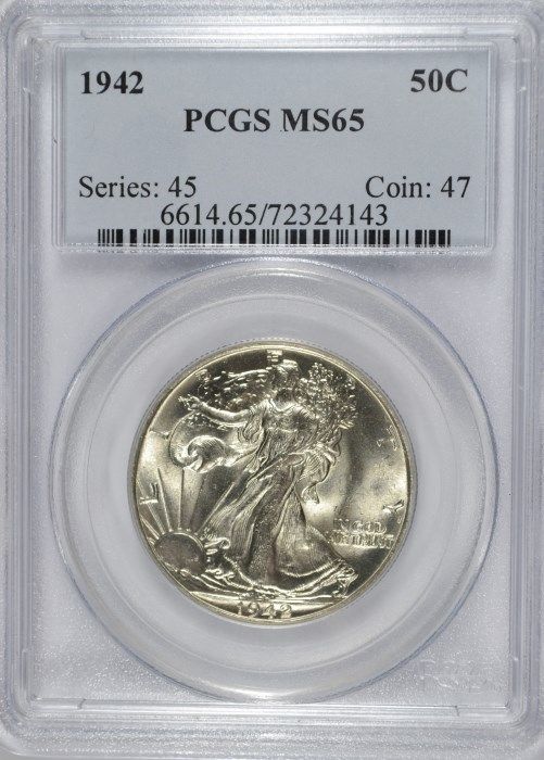 1942 WALKING LIBERTY HALF DOLLAR, PCGS MS-65