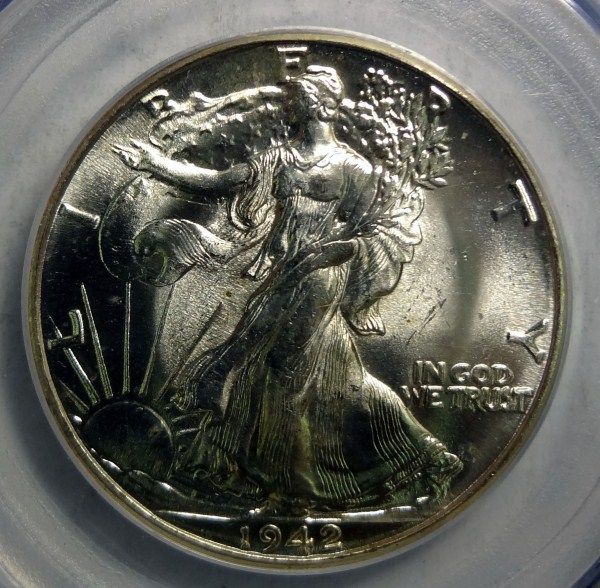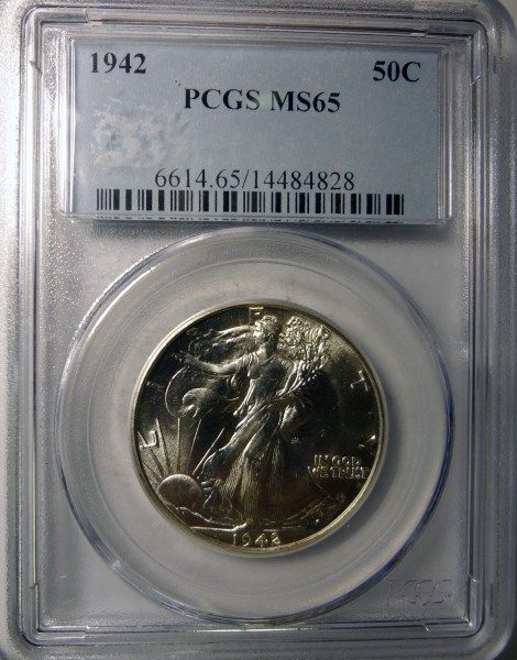 1942 WALKING LIBERTY HALF DOLLAR PCGS MS65 GEM
