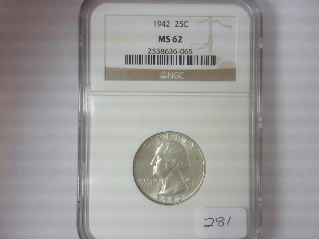 1942 WASHINGTON SILVER QUARTER NGC MS62