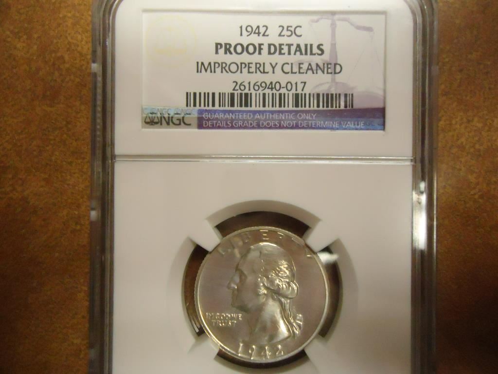 1942 WASHINGTON SILVER QUARTER NGC PROOF DETAILS