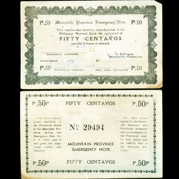 1942 WW2 Guerrilla Rebel Philippines 50c Note Mountain (CUR-007188)