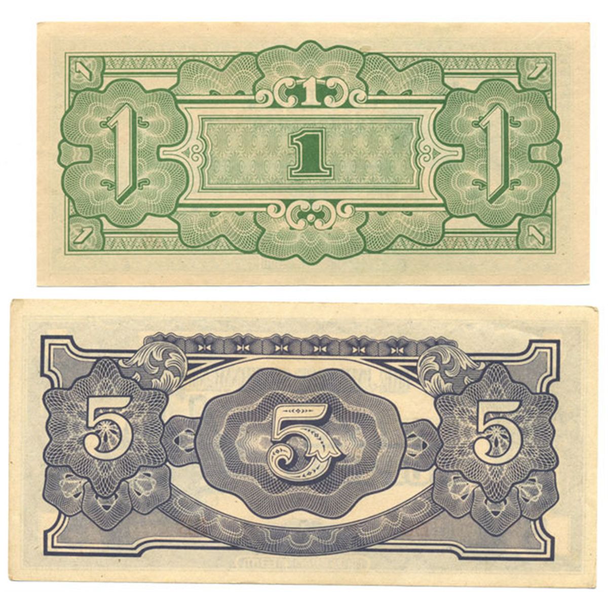 Scarce pair of Burma Japanese invasion money 1 & 5 Rupees; crisp circulated to uncirculated condition; WW2 antique