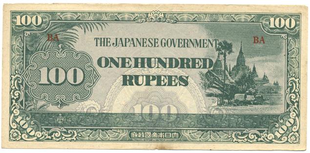 Scarce Burma Japanese invasion money 100 Rupees; crisp circulated condition to uncirculated; WW2 antique