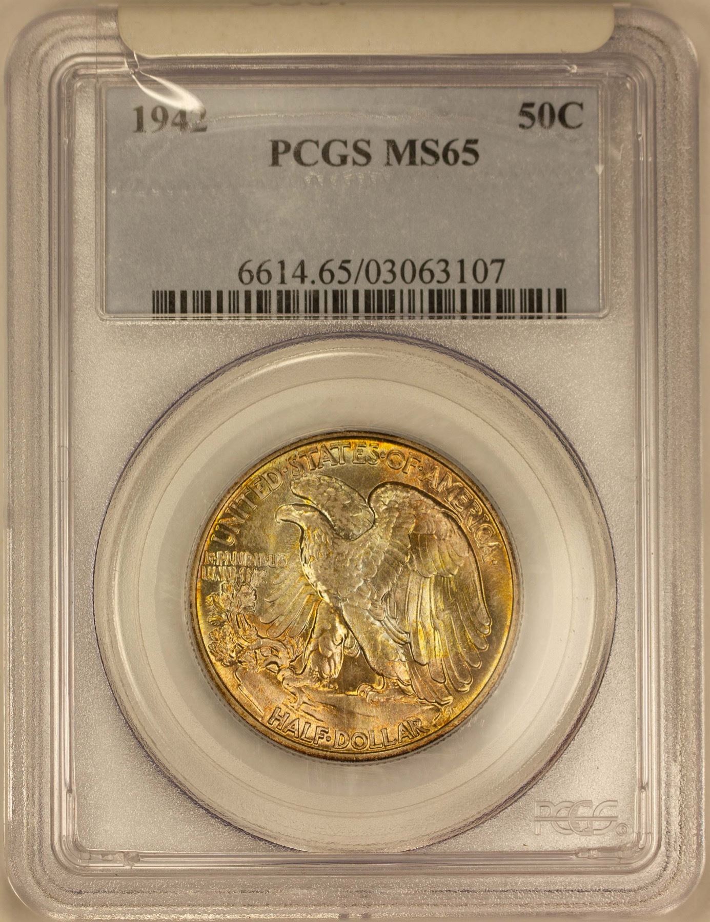 1942 Walking Liberty Half Dollar 50c PCGS MS-65 (Toned)