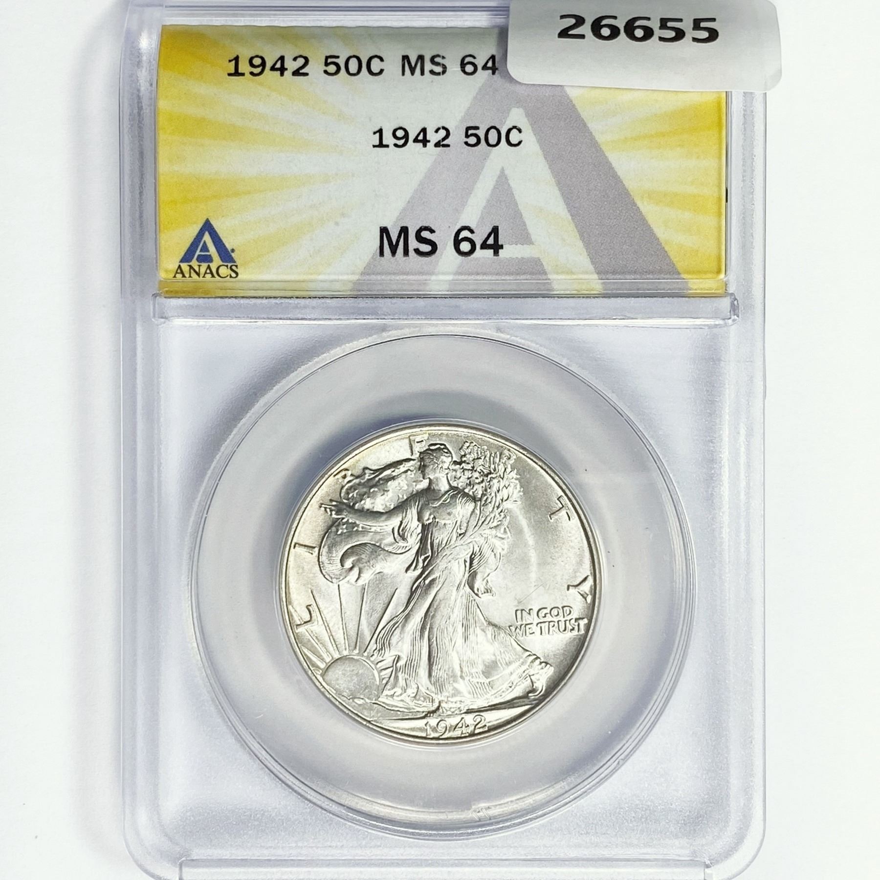 1942 Walking Liberty Half Dollar ANACS MS64
