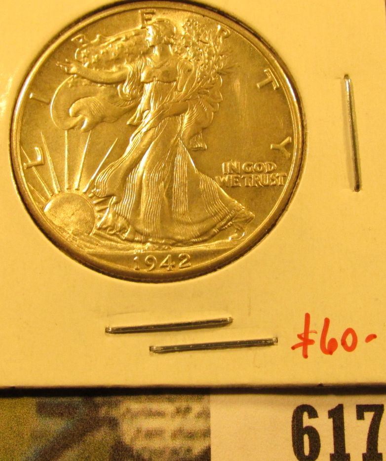 1942 Walking Liberty Half Dollar, BU MS63+, value $60
