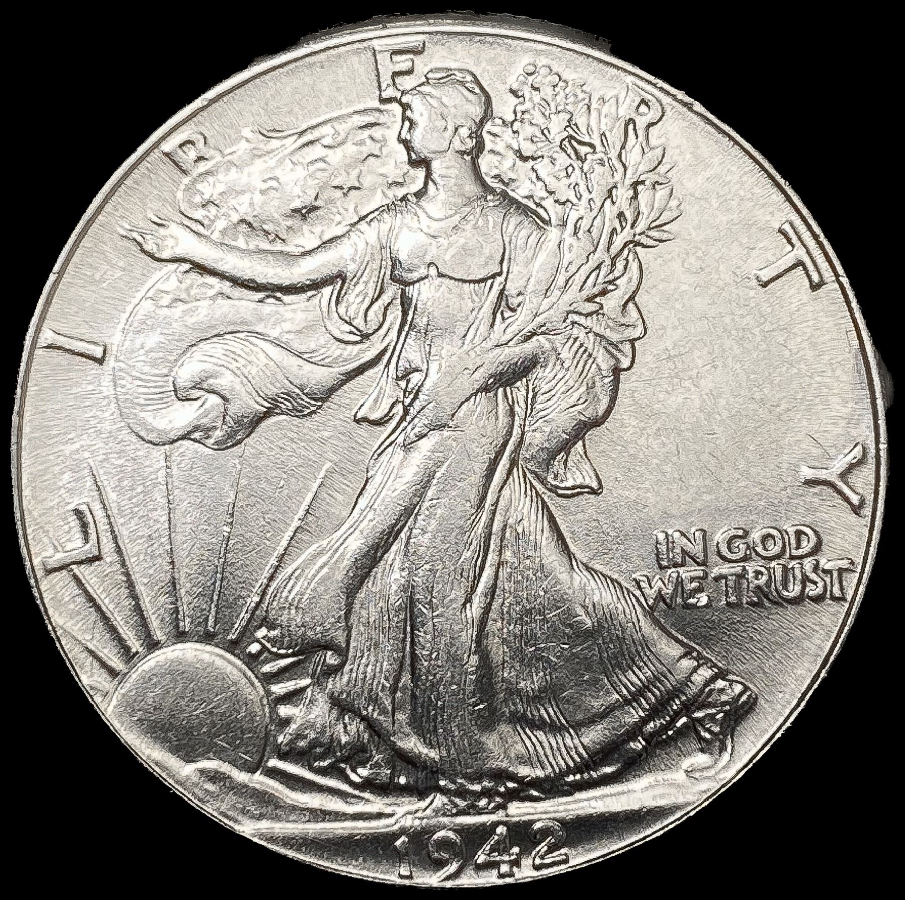 1942 Walking Liberty Half Dollar CLOSELY UNCIRCULA
