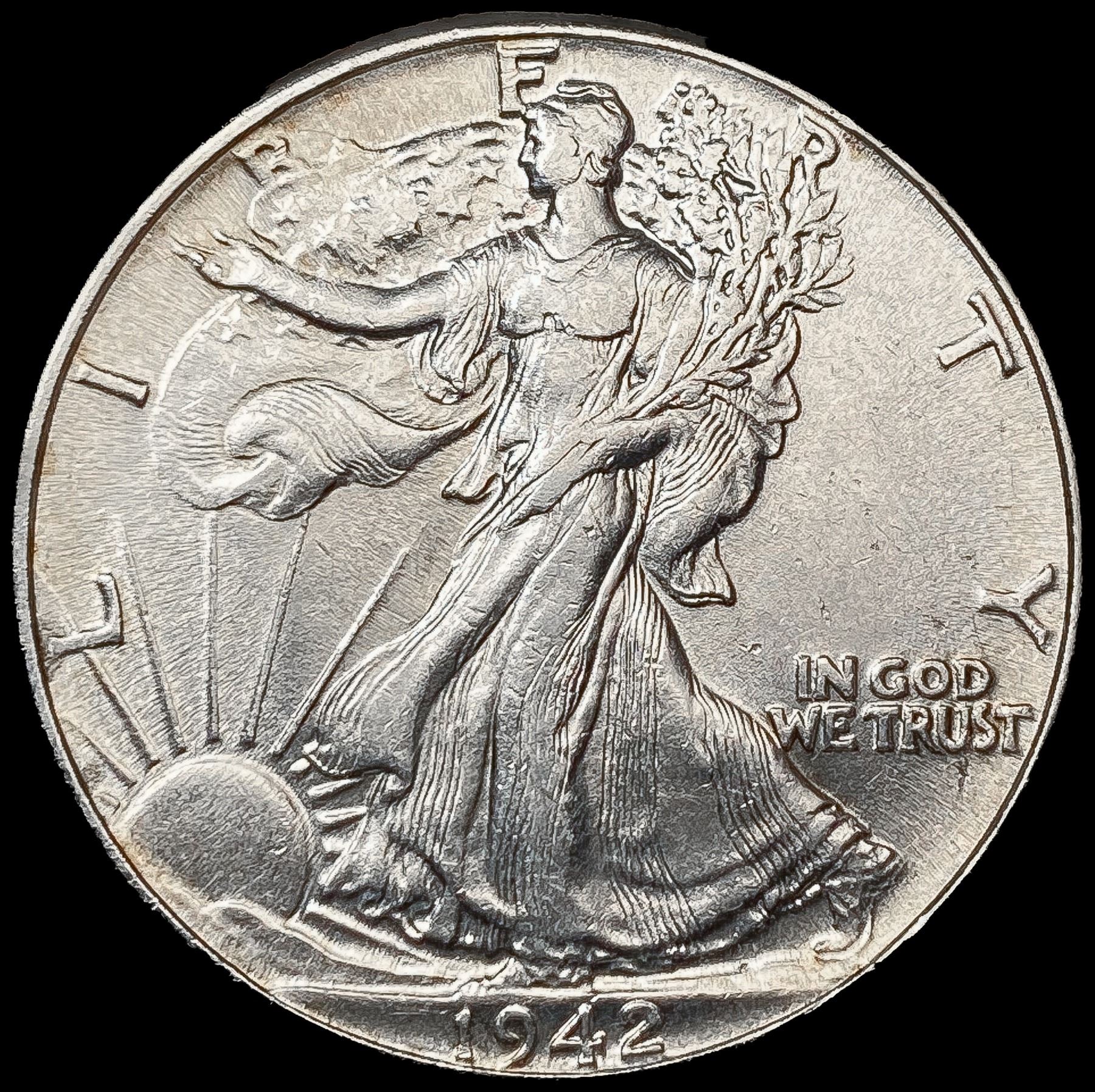 1942 Walking Liberty Half Dollar CLOSELY UNCIRCULA