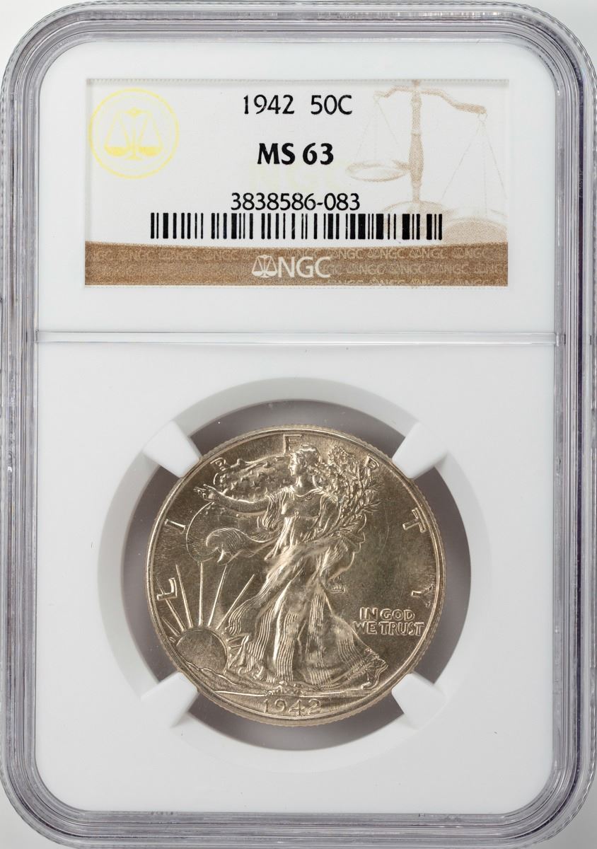 One 1942 Walking Liberty Half Dollar Coin NGC MS63.