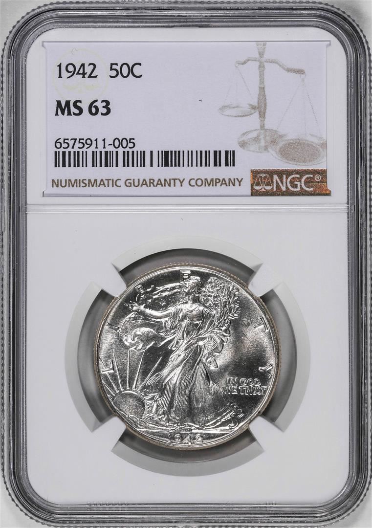 One 1942 Walking Liberty Half Dollar Coin NGC MS63. NGC Certified.