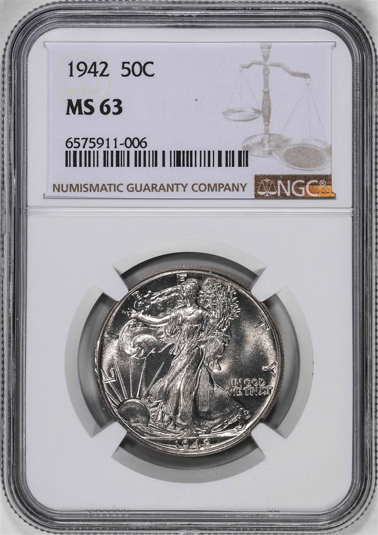 One 1942 Walking Liberty Half Dollar Coin NGC MS63. NGC Certified.