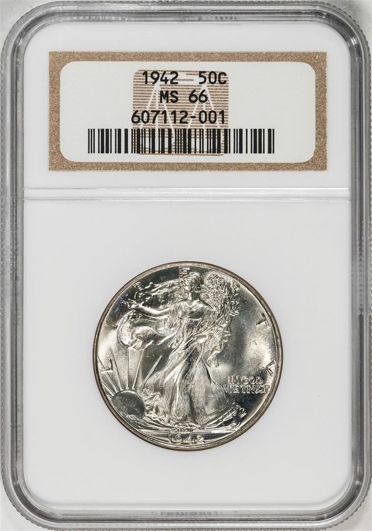 One 1942 Walking Liberty Half Dollar Coin NGC MS66. NGC Certified.