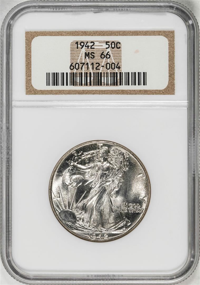 One 1942 Walking Liberty Half Dollar Coin NGC MS66. NGC Certified.