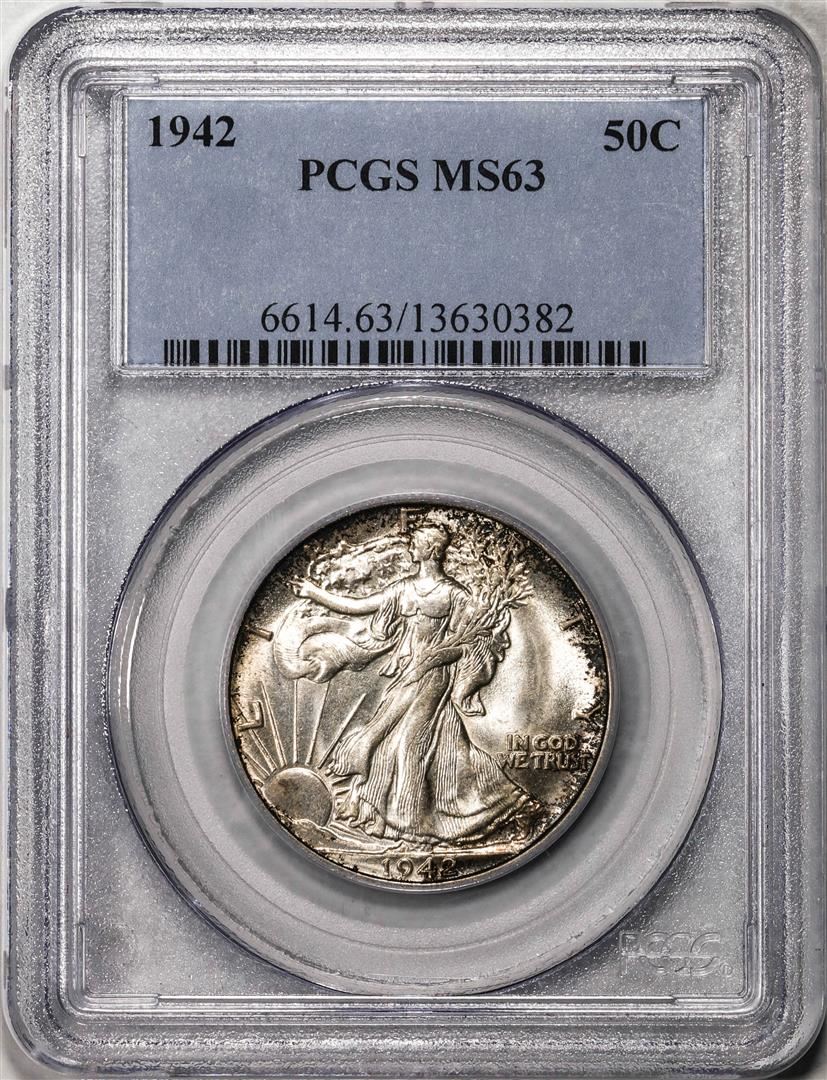 One 1942 Walking Liberty Half Dollar Coin PCGS MS63. PCGS Graded.