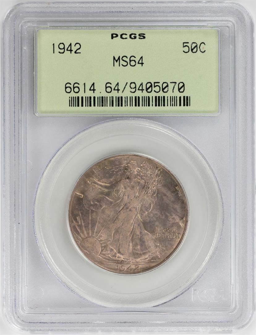 1942 Walking Liberty Half Dollar Coin PCGS MS64 Old Green Holder