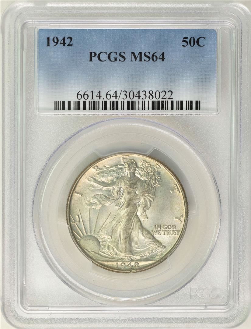 One 1942 Walking Liberty Half Dollar Coin PCGS MS64. PCGS Graded.