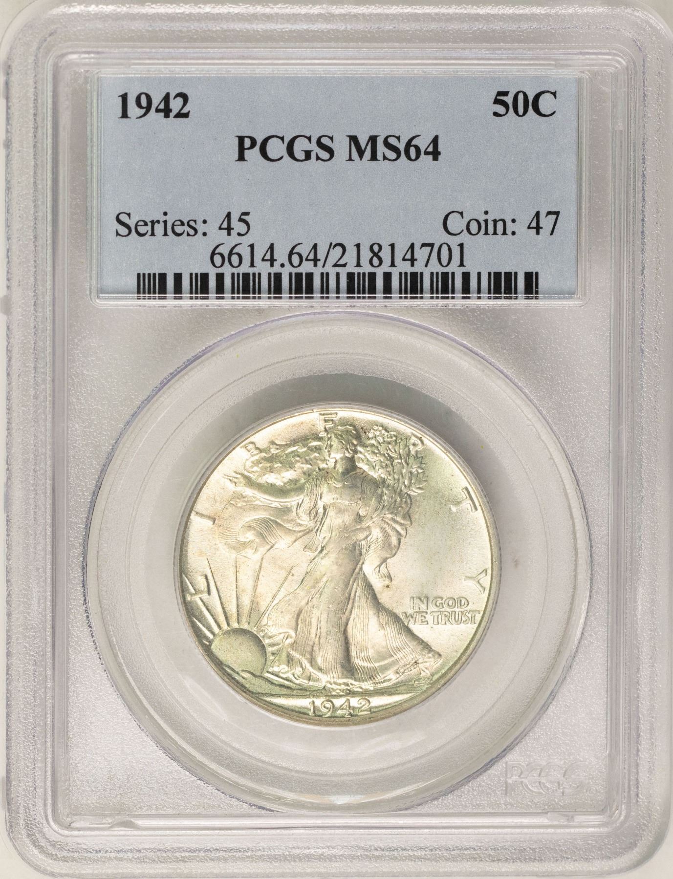 One 1942 Walking Liberty Half Dollar Coin PCGS MS64.