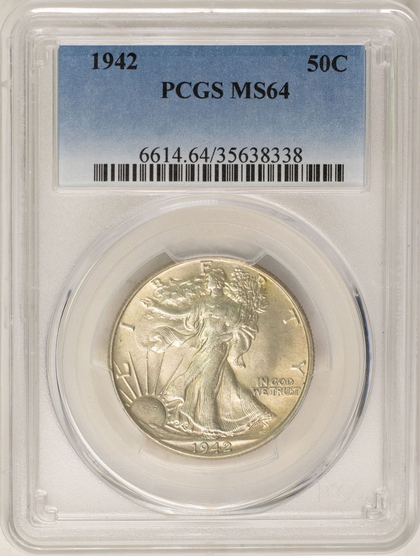 One 1942 Walking Liberty Half Dollar Coin PCGS MS64.