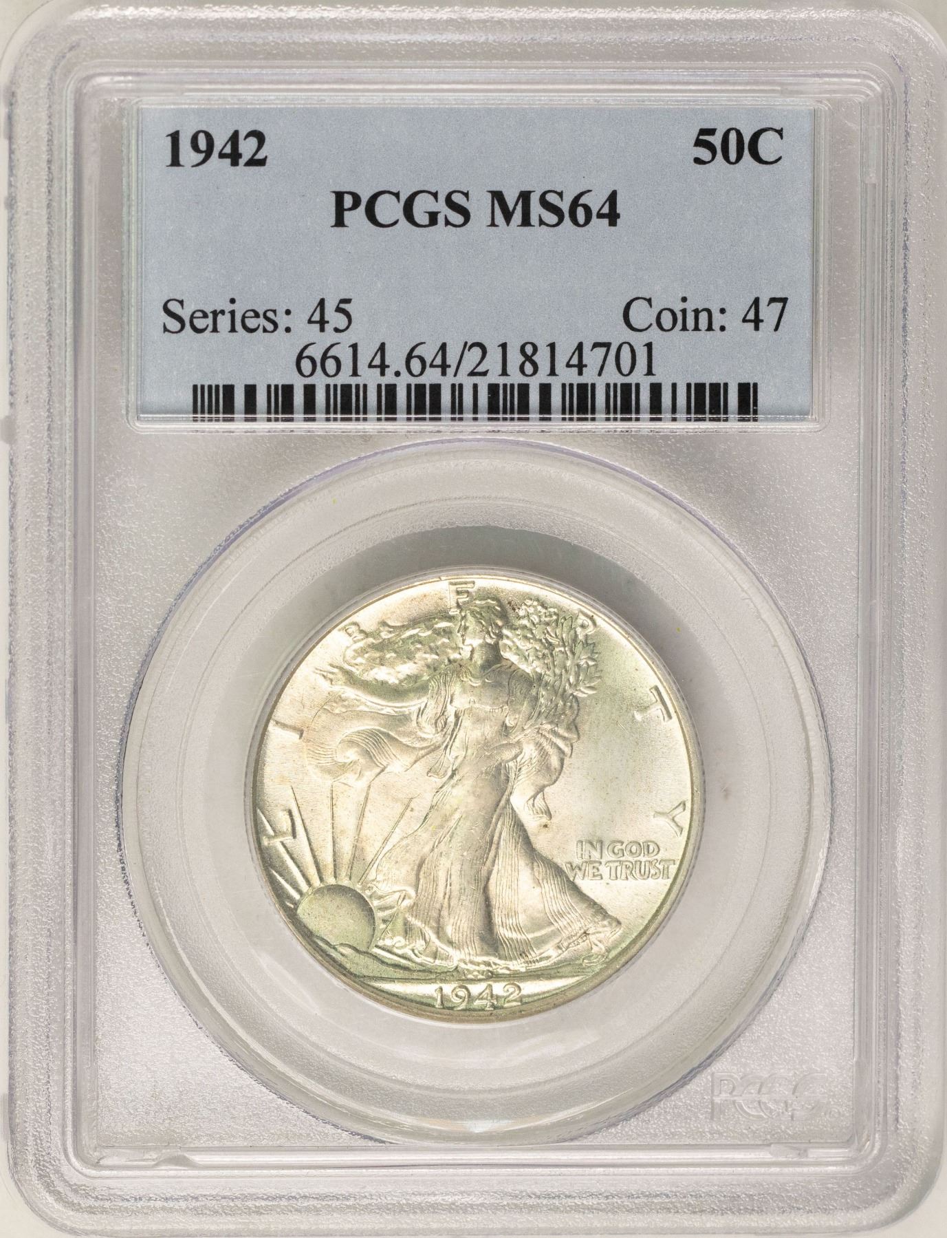 One 1942 Walking Liberty Half Dollar Coin PCGS MS64.