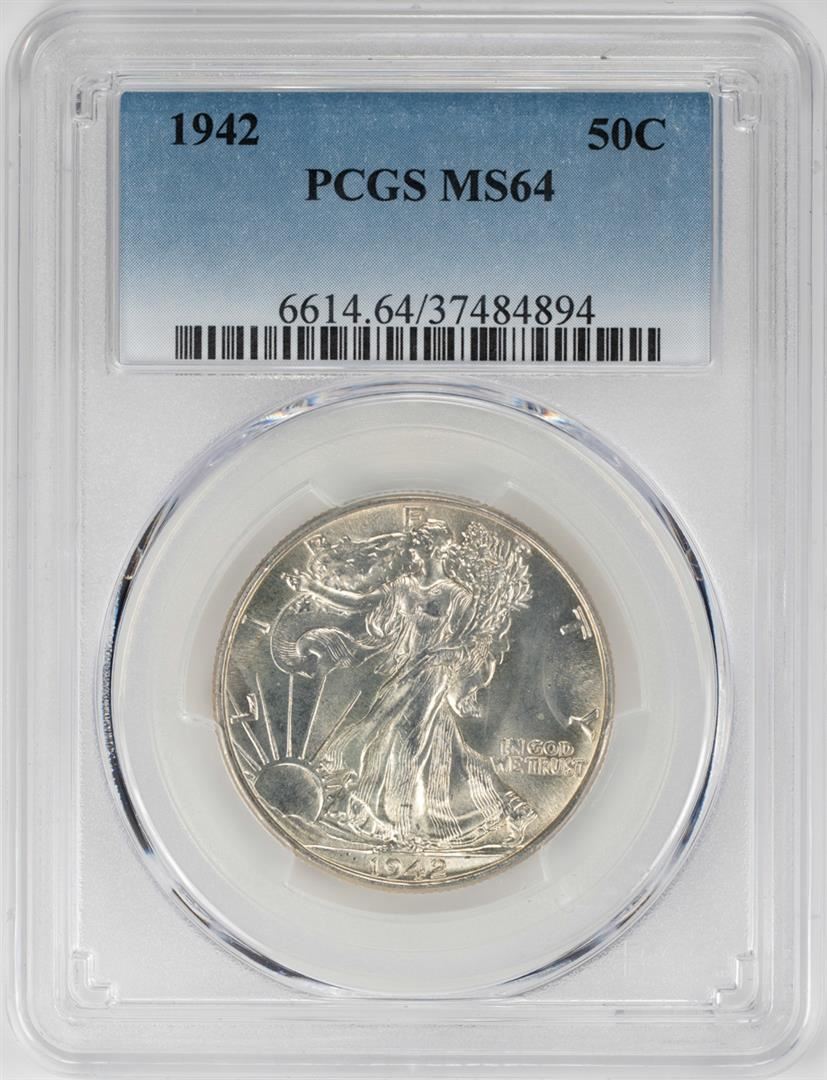 One 1942 Walking Liberty Half Dollar Coin PCGS MS64. PCGS Graded.