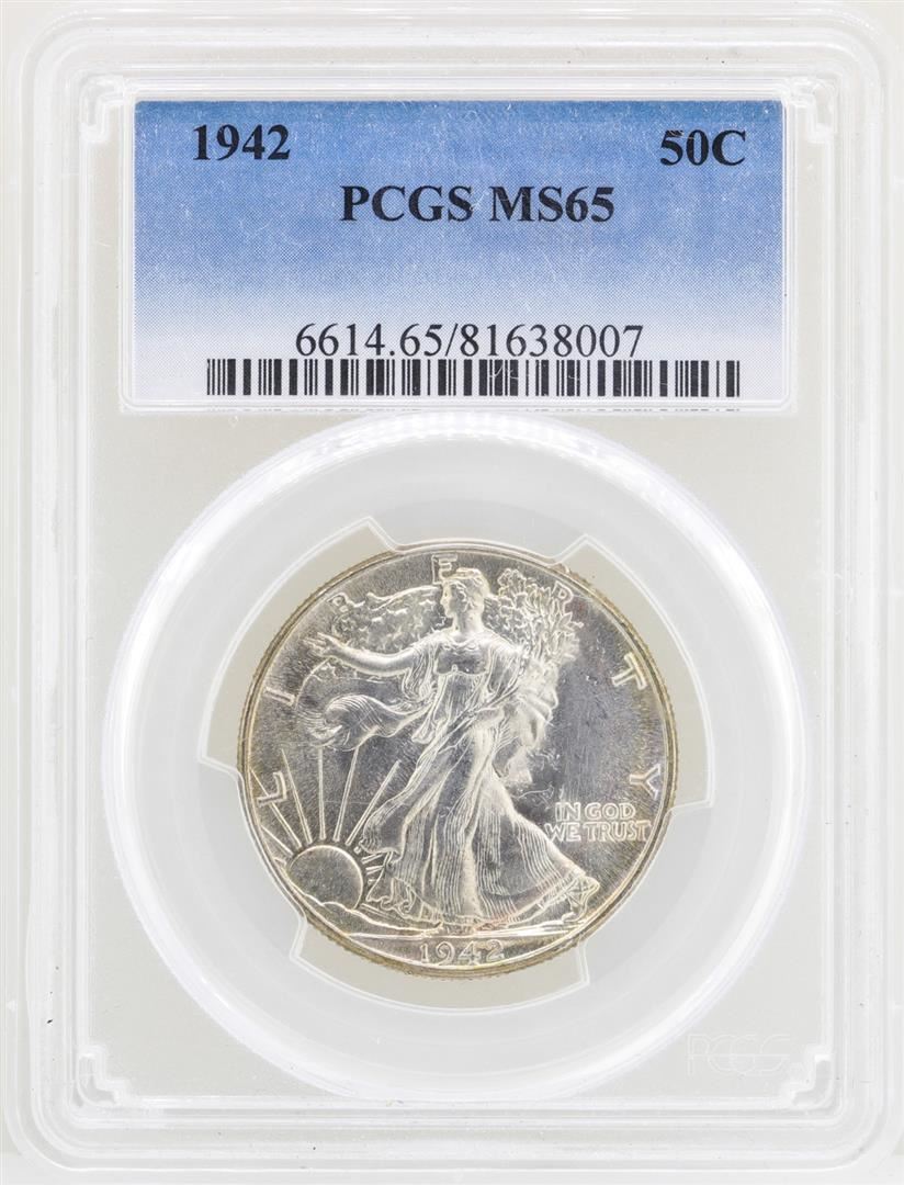 One 1942 Walking Liberty Half Dollar Coin PCGS MS65. PCGS Certified.