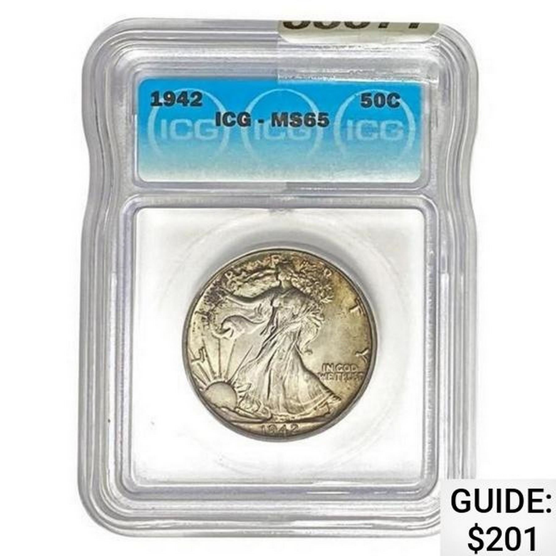 1942 Walking Liberty Half Dollar ICG MS65