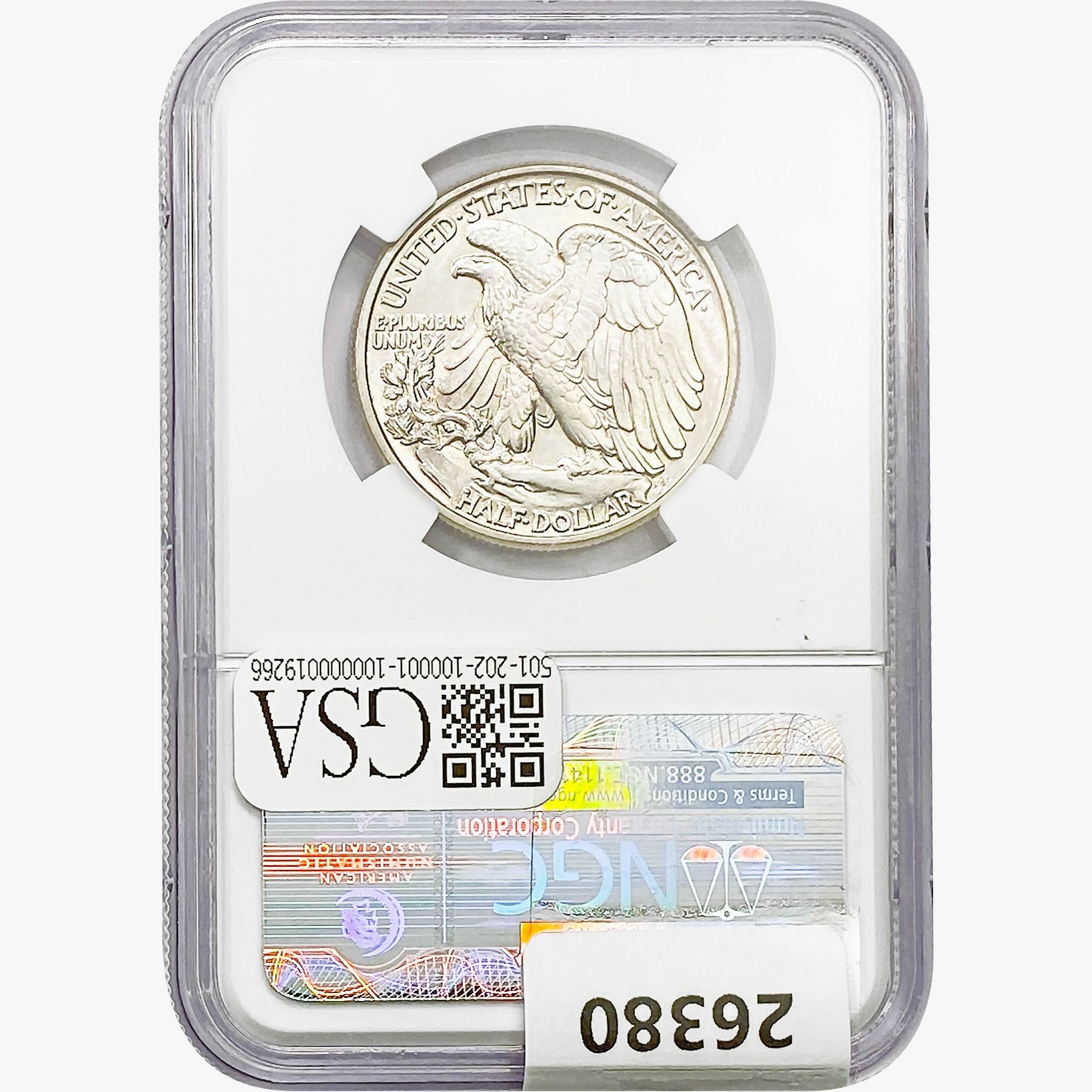 COINS AND CURRENCY LISTED IN GSA'S CATALOG AS GRADED AND ENCAPSULATED BY PCGS, NGC, ANACS, ICG, PCGS CURRENCY, PMG, PCGS BANKNOTE GRADING, CMC OR ANY OTHER THIRD-PARTY GRADING SERVICE ARE LIKEWISE SOLD "AS-IS" EXCEPT AS EXPRESSLY SET FORTH HEREIN. ALL THIRD-PARTY GRADING SERVICE GUARANTEES, INCLUDING AUTHENTICITY, ARE THE SOLE RESPONSIBILITY OF THE THIRD-PARTY GRADING SERVICE AND NOT WARRANTIES OR GUARANTEES OF GSA. BIDDERS SHOULD CONTACT THESE THIRD-PARTY GRADING SERVICES DIRECTLY WITH RESPECT TO ANY CLAIMS OR QUESTIONS THEY MAY HAVE CONCERNING THEIR GUARANTEES AND WARRANTIES. BIDDERS ACKNOWLEDGE AND AGREE THAT AUCTIONEER IS NOT BOUND BY OR LIABLE FOR ANY OPINION OR CERTIFICATION BY ANY THIRD-PARTY GRADING SERVICE. REMOVAL OF A PRODUCT FROM ITS PROTECTIVE CASING OR HOLDER OR ALTERATION OF ANY COIN HOLDER WAIVES ALL RIGHTS CONCERNING THE PRODUCT CONTAINED THEREIN.