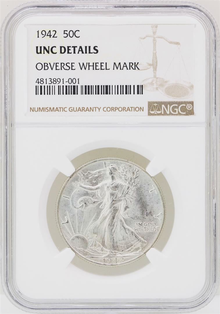 One 1942 Walking Liberty Half Dollar NGC Unc Details. NGC Certified.