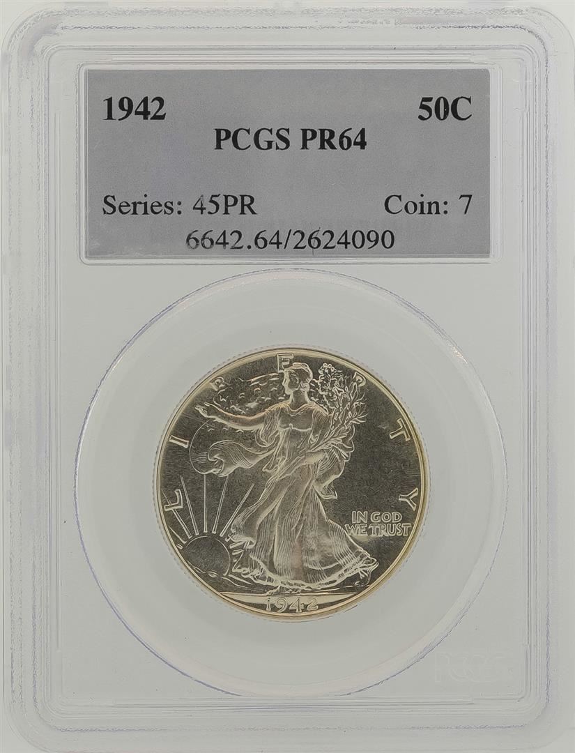 One 1942 Walking Liberty Half Dollar Proof Coin PCGS PR64. PCGS Certified.