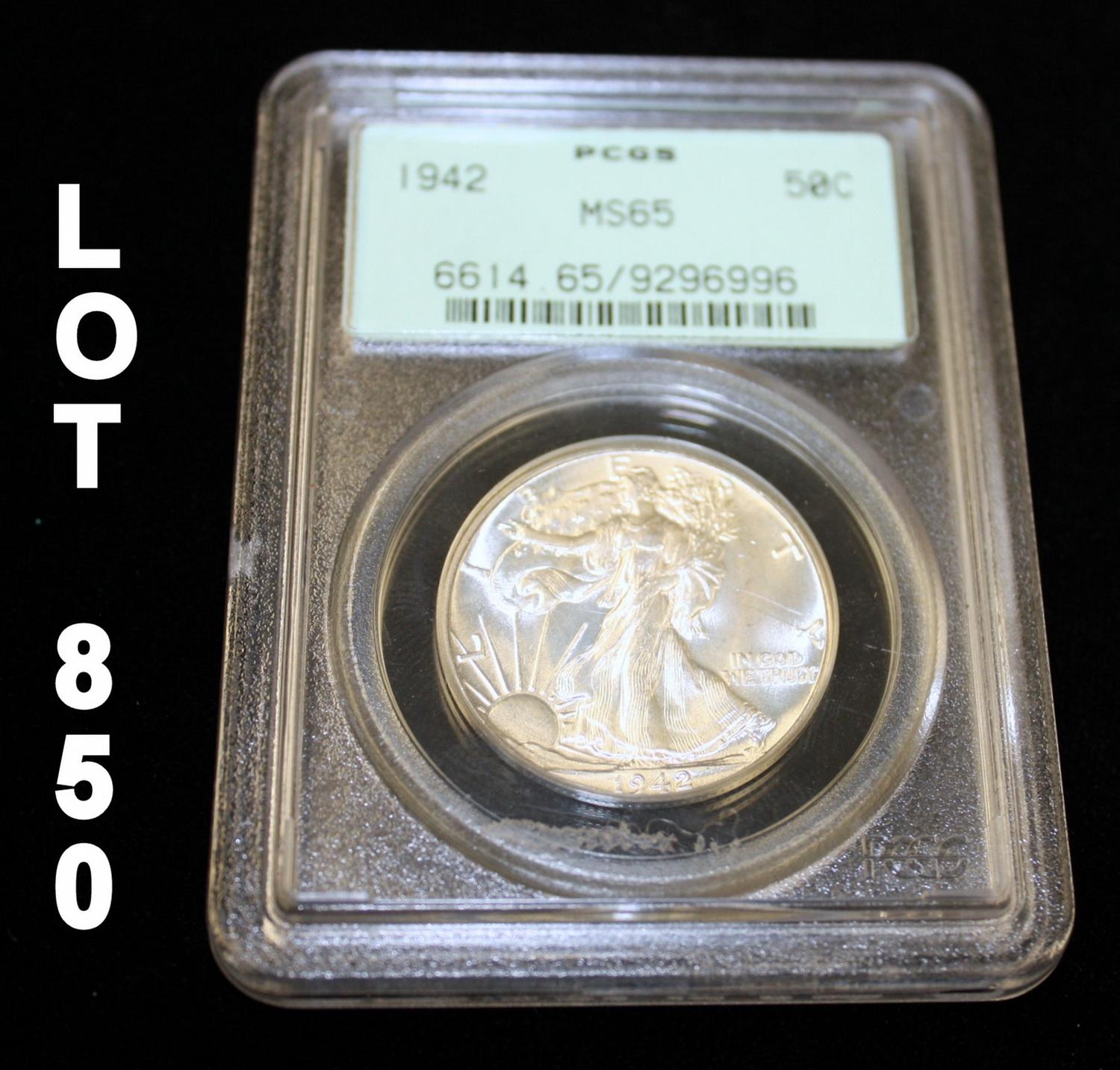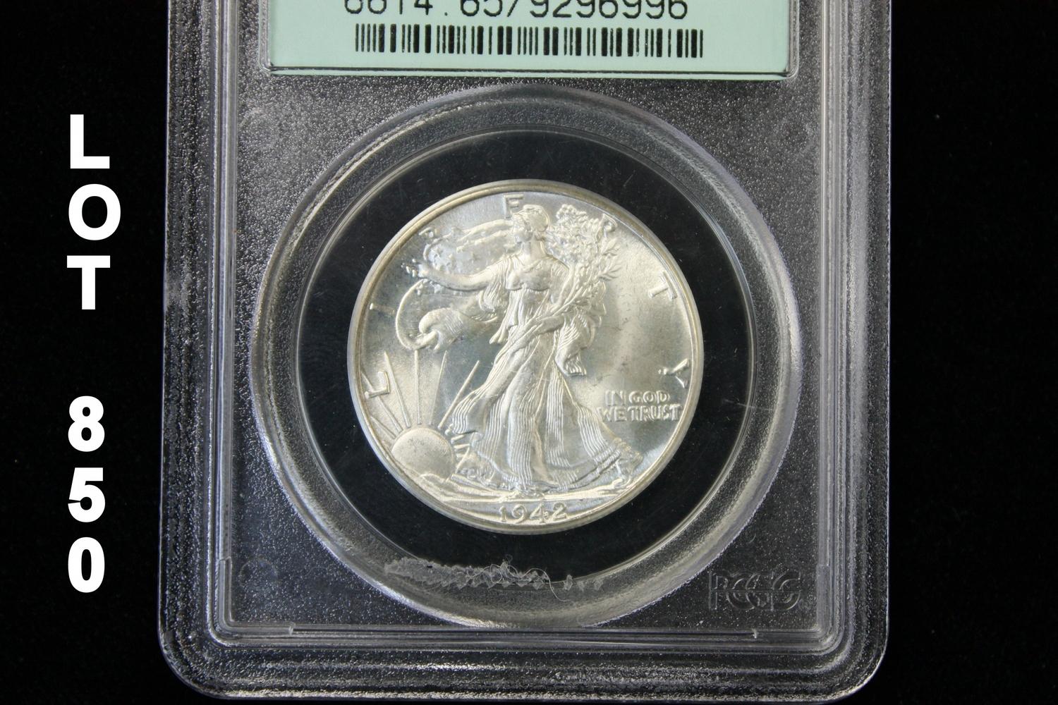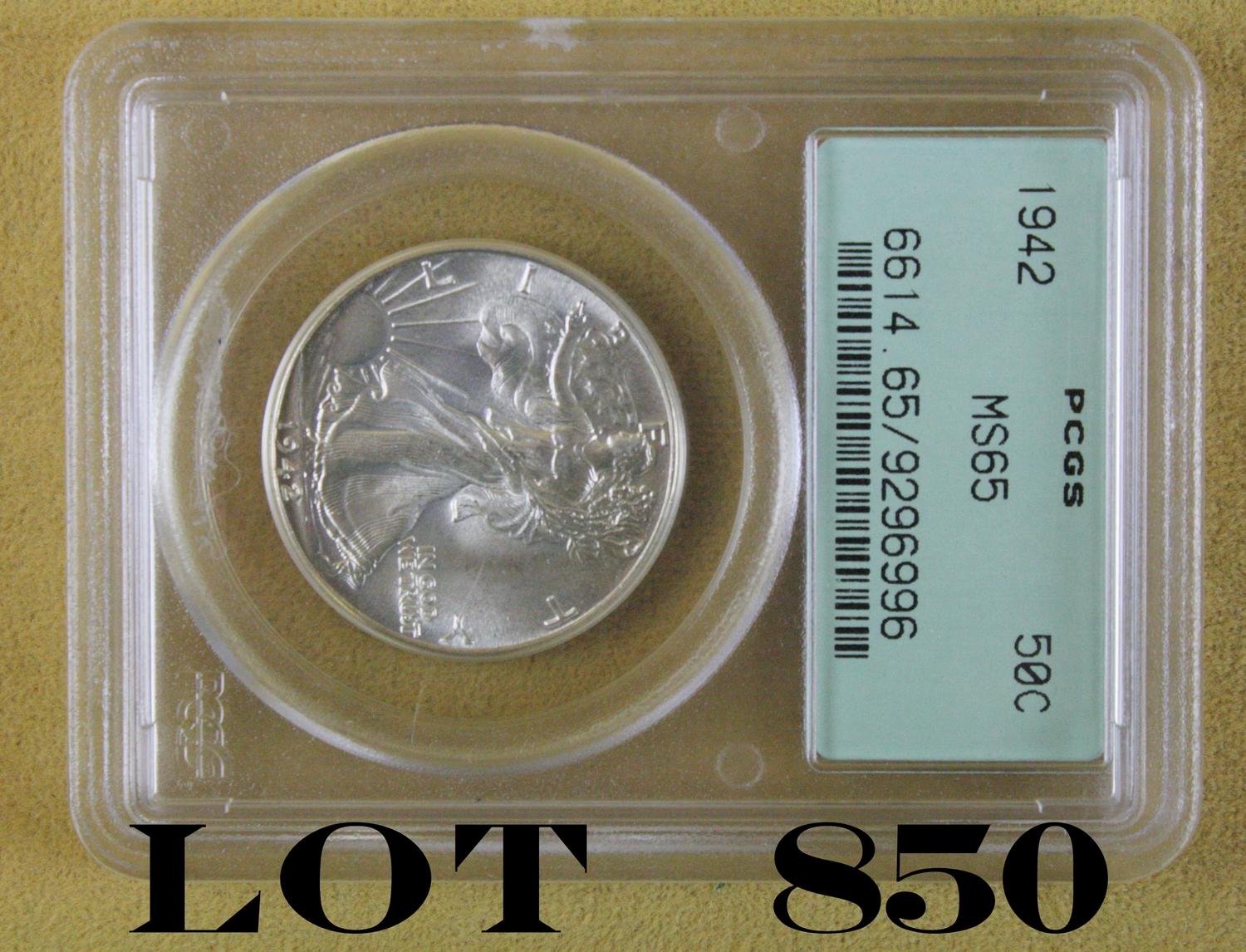 1942 Walking Liberty half dollar, PCGS graded MS65. Est: $100 - $300