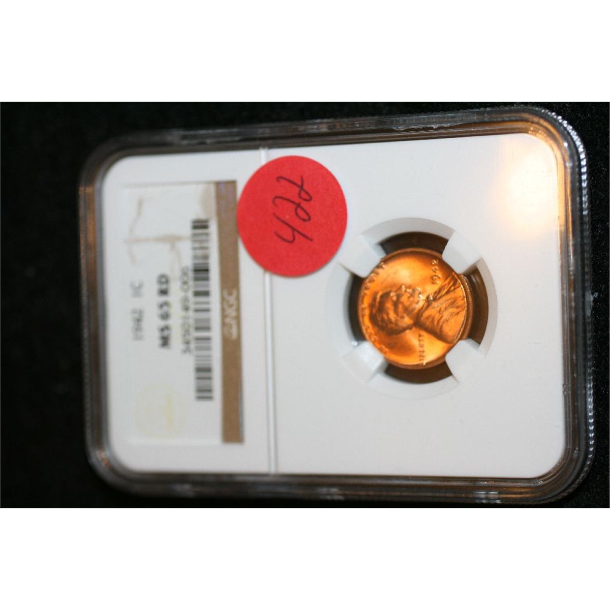 1942 Wheat Back penny, NGC graded, MS65 RD
