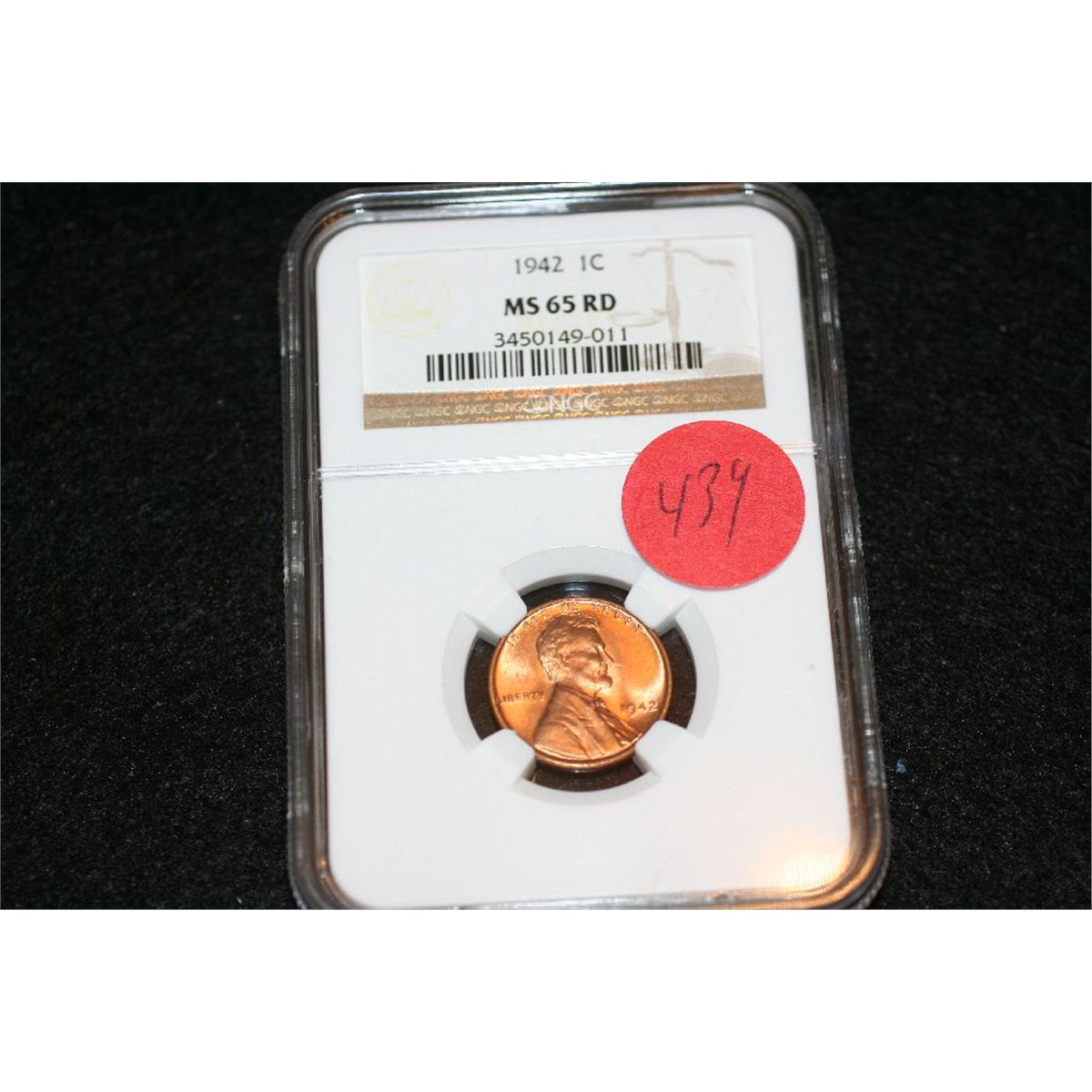1942 Wheat Back penny, NGC graded, MS65 RD