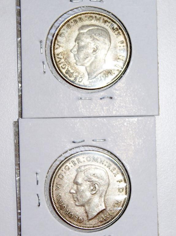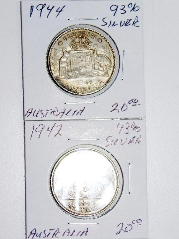 1942 and 1944 Australian Florin Coins - Almost Uncirculated - 93% Silver - Sold Times the Money Australian 1 Florin Coins 1942 and 1944
