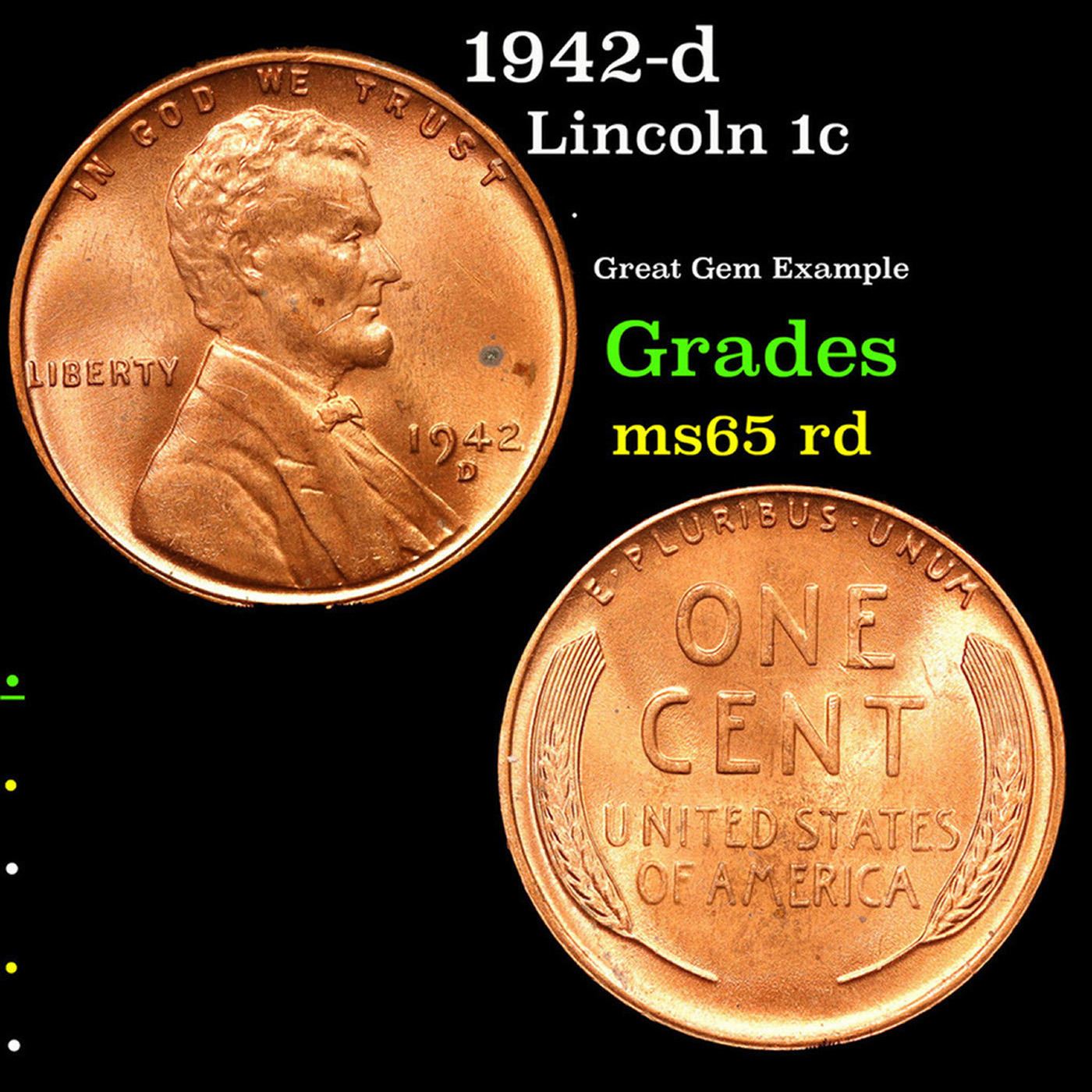 1942-d Lincoln Cent 1c Grades GEM Unc RD.