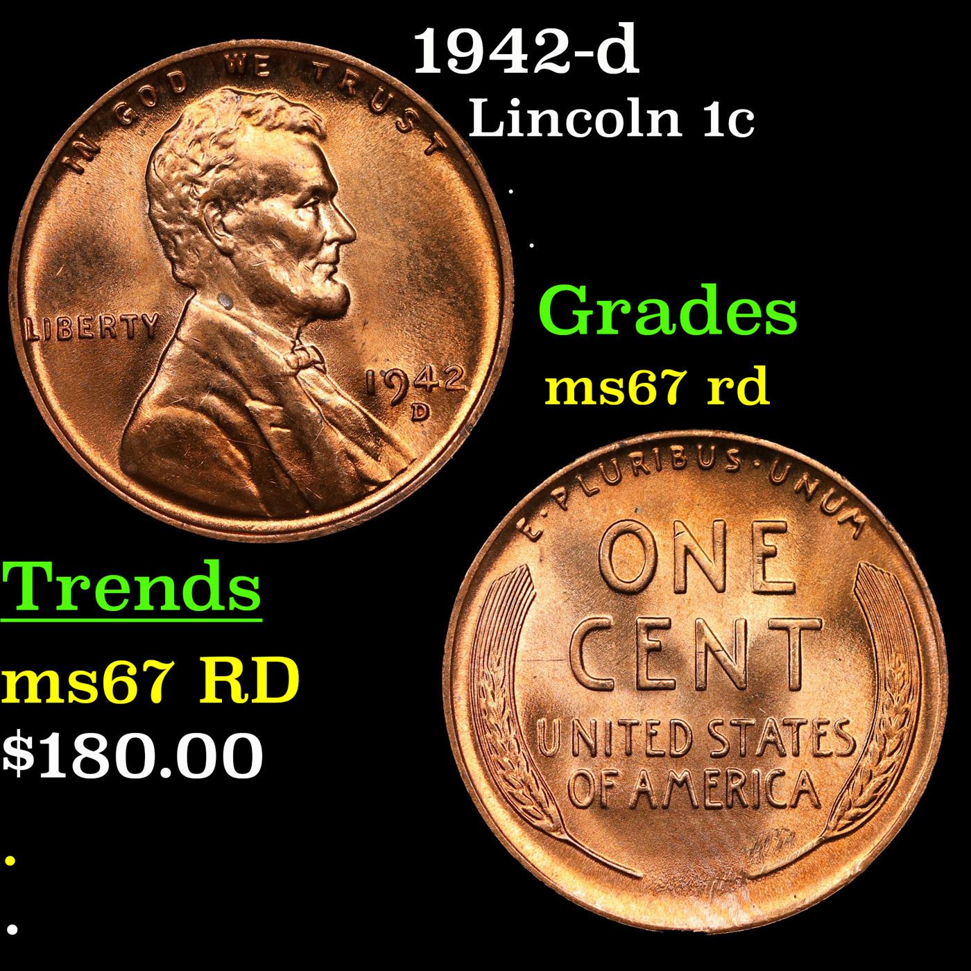 1942-d Lincoln Cent 1c Grades GEM++ Unc RD.